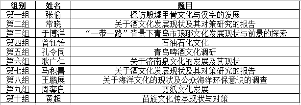此次“文化调研”共收到学生提交的调研报告74篇,现已汇编成册,其中调研内容关于琅琊文化7篇,酒文化18篇,齐鲁文化5篇,民族文化5篇,建筑文化8篇,其他类31篇。