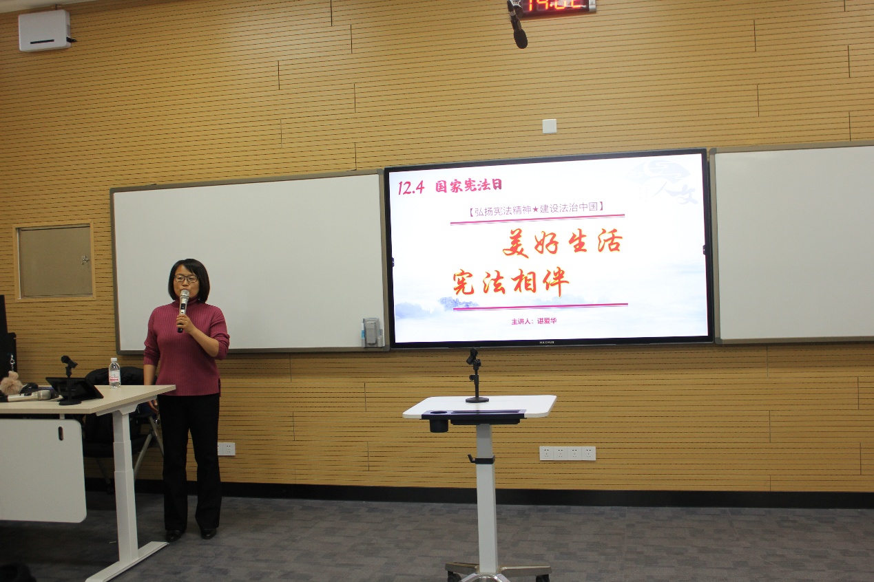 2020年12月4日是我国第七个国家宪法日,文法学院谌爱华副教授受邀开展“美好生活,宪法相伴”主题讲座,第六期人文素养班全体同学参加讲座。