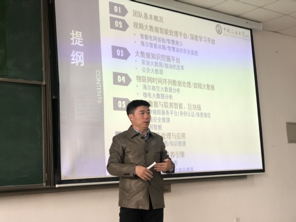 张卫山教授以一个开放性问题开篇,引发同学们思考如今人工智能的不足之处,并设想未来的人工智能应用。同学们积极讨论、大胆发言,从不同角度说出自己的见解,现场学术氛围浓厚。紧接着,张卫山教授全面讲述了“视频大数据智能处理平台与深度学习平台”、“大数据知识挖掘平台”、“物联网时间序列数据处理与故障大数据”、“平行数据与联邦智能、区块链”、“自然语言处理与应用”、“推荐引擎”等大数据相关知识,层层深入、环环相扣。在讲解过程中,张卫山教授理论与实践相结合,用具体实例展示大数据的处理与应用,使同学们对抽象问题问题有了更加具象、客观的认识。在讲座过程中,张卫山教授始终以轻松和谐的方式与同学们交流互动,鼓励同学们积极提问,引发同学们主动探讨和思考并对学习大数据与人工智能所需要的知识储备提出建议。他鼓励同学们学好程序设计,打好编程基础,努力学习,提高本领。