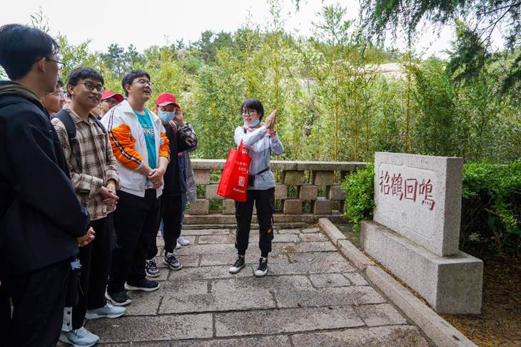 此外,同学们了解了道家行拱手礼的正确方式,在招鹤回鸣”的石碑前,凝神拍掌,听到了“仙鹤”天籁般“吱”的一声鸣叫,了解该处的传说渊源,领略击掌鹤鸣的神奇。