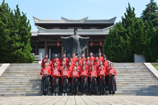 到达目的地后,同学们换上传统服饰,于千古一帝——秦始皇的雕塑下进行第一次诗歌朗诵。诵读了《念奴娇·赤壁怀古》,追忆古人的洒脱旷达,庆此有涯之生,追无涯之梦;诵读辛弃疾的《南乡子·登京口北固亭有怀》来体会稼轩的那份磅礴与悲怆;诵读《死水》来纪念红烛一般燃烧自己,照亮前路的闻一多先生,赞美如今生机勃勃的华夏;诵读《大学》与《孟子》,来提醒当代青年需承先人之遗志,继前辈之精神,修德修身,方能行远。