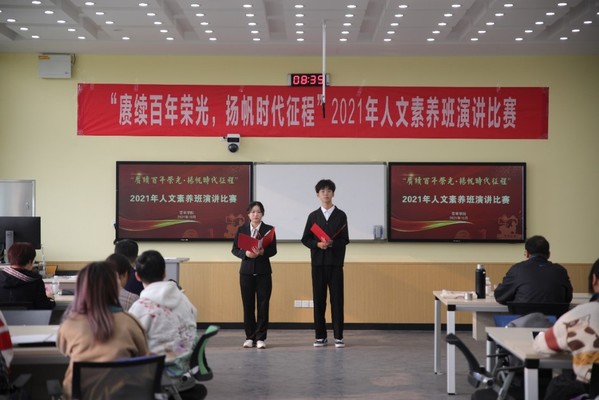 为庆祝中国共产党成立100周年,弘扬伟大建党精神,引导学生树立正确的历史观、民族观、国家观和文化观,10月24-30日,必威西汉姆联入口官网组织举办“赓续百年荣光,扬帆时代征程”演讲比赛,人文素养班学生参加。