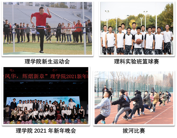 重视思想学习,在实践交流中共同成长,互帮互助中增强集体凝聚力,打造有爱有温度的班集体。累计举办13次主题团日活动,参加理学院新生运动会,拔河比赛,理科实验班篮球赛,理学院2021新年晚会等文体实践,其中理学院拔河比赛第一名,代表学院参加校级比赛,理学院新生运动会理科实验班获冠军,跳高第一名、三级跳第二名、男子4*100第一名,女子4*100第三名、女子4*400第一名,班级同学也积极参与各类文体社团及活动。