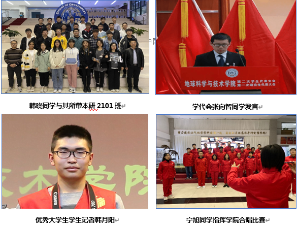 学生工作里,班级共计8名同学担任校院两级学生组织负责人或新生兼职班主任,其中包括本研2101班兼职班主任、学院学生会主席团成员、学院创新创业中心主席、春晖志愿服务队队长、地学院艺术团团长等。
