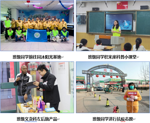 志愿服务中,以班级为单位前往关爱大龄自闭症患者(同沐阳光)基地、积米崖小学科普志愿服务基地、关爱聋哑儿童志愿活动基地。疫情期间累计志愿服务800余小时,为山东省希望小屋捐款1550.26元,义卖科左后旗扶贫产品6340.4元。