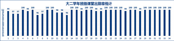 课堂考勤落实常态管理,课堂考勤达到常态化,以筑牢基础,稳固课堂效果基本盘。每学期16周后开始进行集体自习,借用单独教室作为自习地点,要求成绩排名50%后同学必须参加,用上交手机作为打卡方式,结合学习情况设计小课堂,同时设置专人负责班级集体自习管理。每周进行一次班级自测,由学习委员牵头、任课老师指导制定自测试卷,以考试+考察+抽测三种方式进行自测,根据自测成绩掌握班级学习情况后关注自测成绩较为落后同学。在这样的制度下,从大一学年的及格率98.59%,优良率62.98%,到大二学年及格率100%,优良率62.98%。