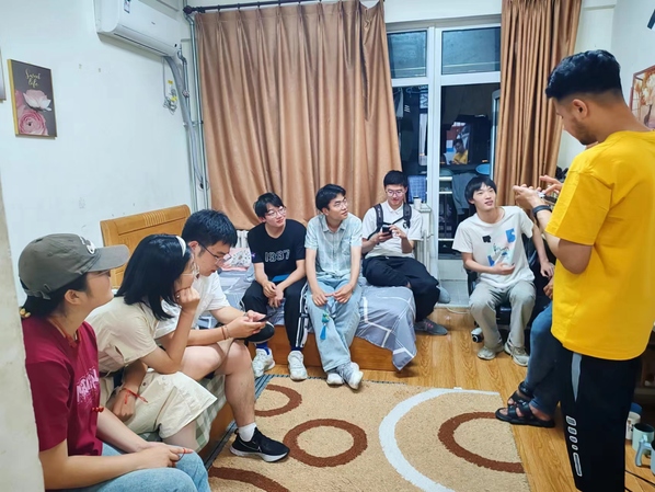 品尝结束后大家围在一起开心的聊起大学生活。“来中国这么久,还没有中文名字,你们帮我取一个吧”巴基斯坦学生Muzakir Gul真诚的提出自己的愿望,“我名字的意思和花有关,希望中文名有大自然的感觉”中国学生立刻展开讨论,“华这个字好,和花有关,读音也相似”“晨这个字是有朝气、有力量的表示”讨论结束后大家在纸上写下“李晨华”这个名字,收获来华留学生一致赞赏。