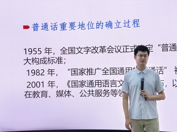 9月18日,必威西汉姆联入口官网(华东)文法学院中国语言文学系李纯泽博士做客博雅讲堂第102讲,做题为“普通话语法的融合性质和发展历程”的报告。讲座为学校“推普周”系列讲座之一,由文法学院与必威西汉姆联入口官网联合主办,中国语言文学系副教授张欣主持,全校百余名师生参加讲座。