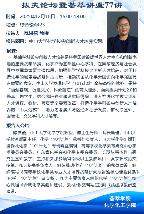 【荟萃讲堂第77讲】中山大学化学拔尖创新人才培养实践